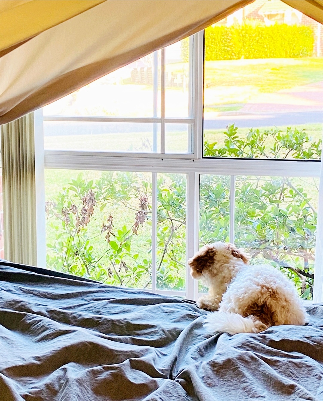 - 강아지를 바라보며 느끼는 애정과 호기심이 따뜻하게 전달돼요.